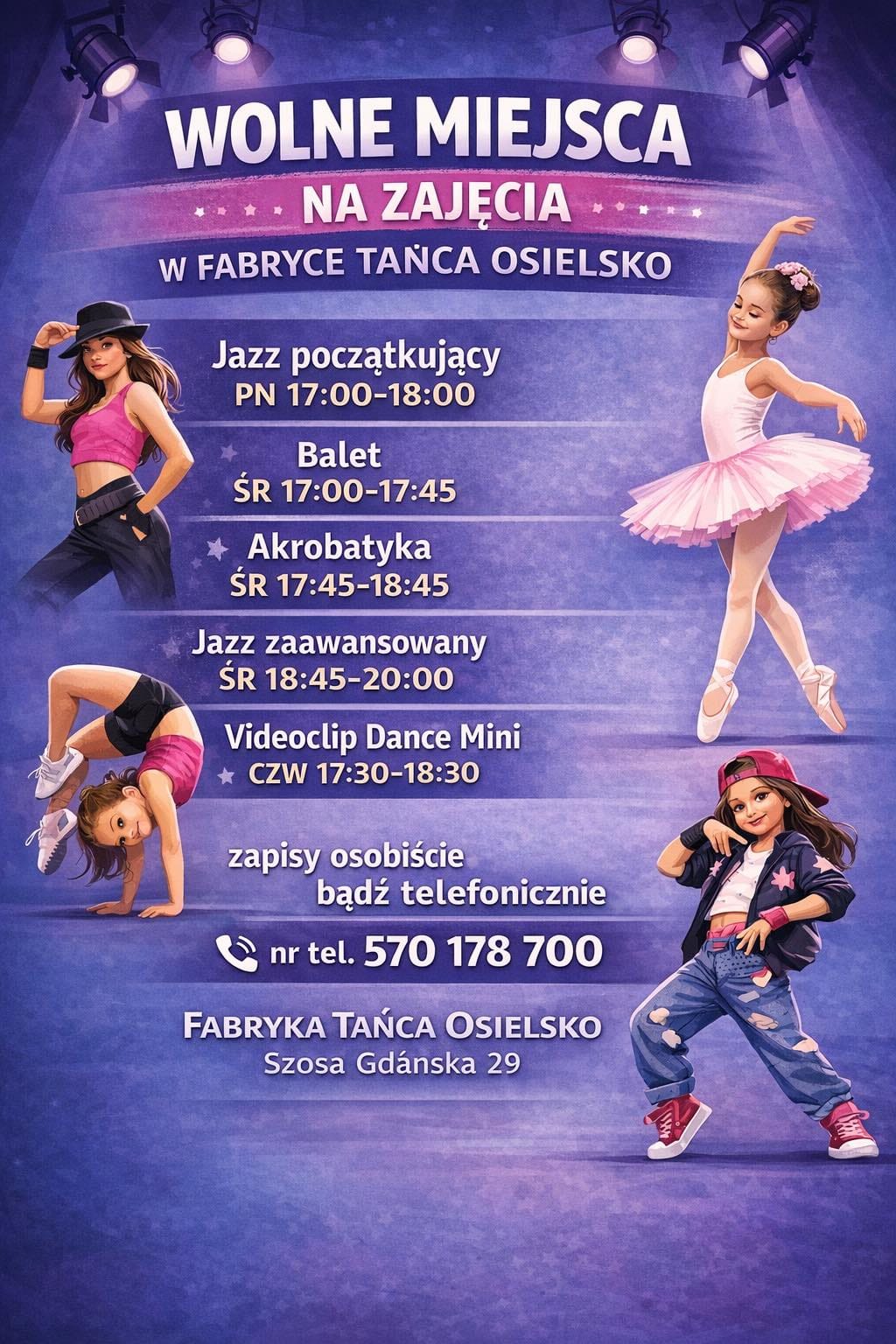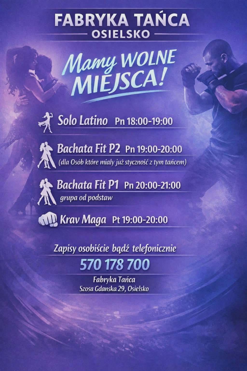 Wolne miejsca na zajęcia dla dzieci i dorosłych! Fabryka Tańca 7 stycznia 2026 ∙ Przeczytasz w minutę Zapraszamy do zapisów . Skopiowano link!